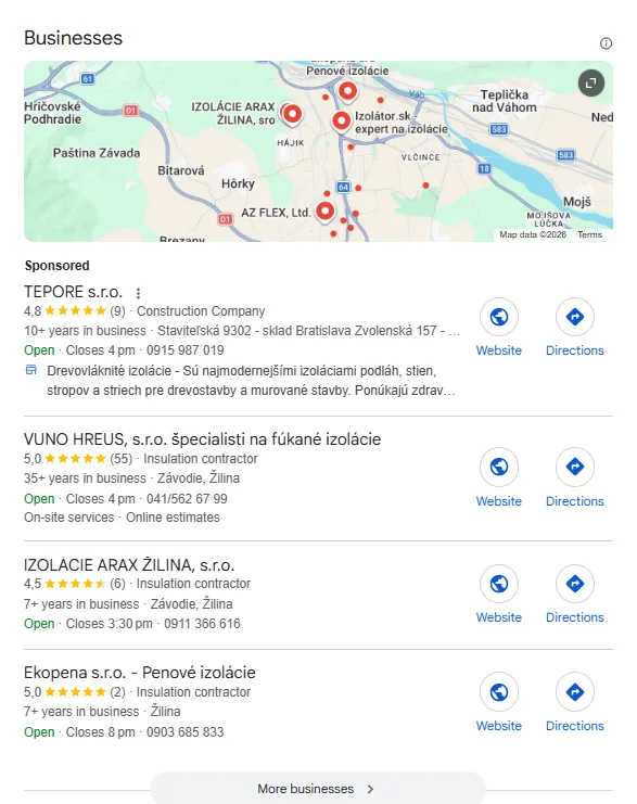 a zadá do Google napr. "izolacie zilina",